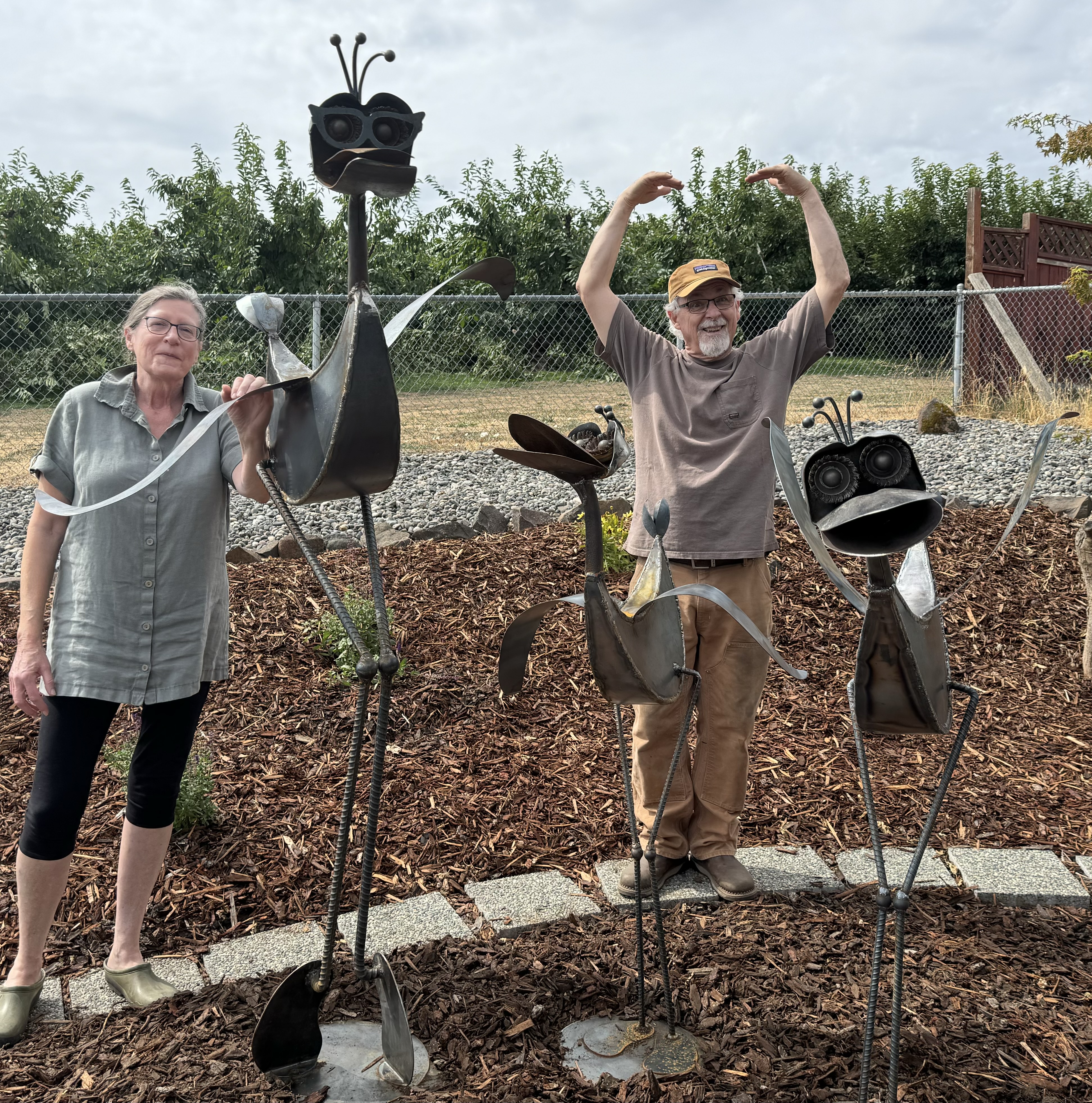 Some of Tom's sculptures include beautiful fused glass created by several local artists. The colorful glass is always so pretty in the dead of winter, especially on a gloomy, dark day.